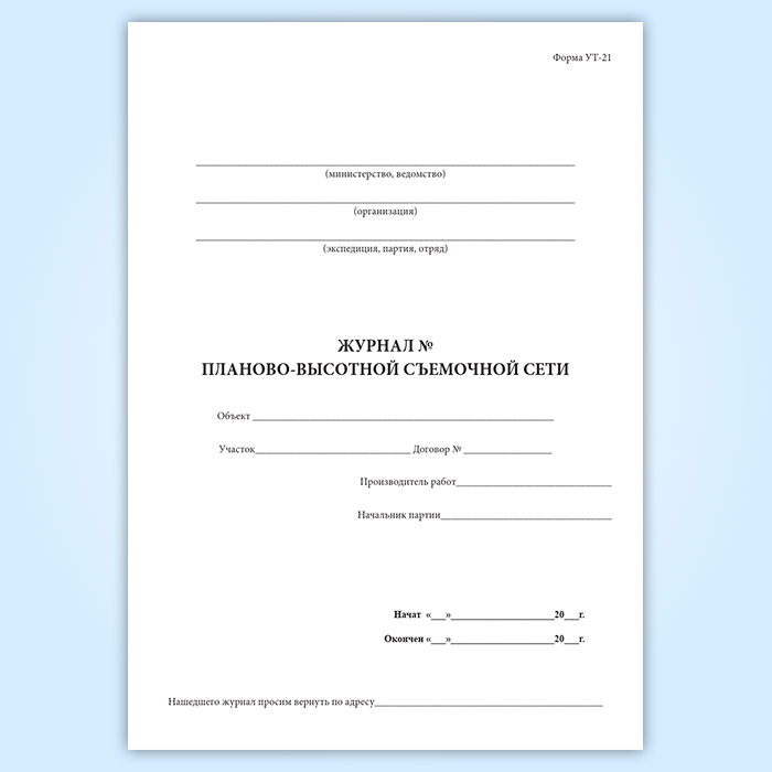 Журнал планово-высотной съемочной сети (форма УТ-21) в Кызыле купить