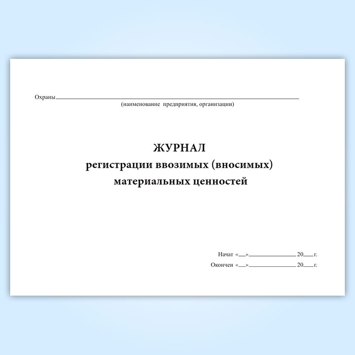 Журнал регистрации ввозимых (вносимых) материальных ценностей в Кызыле купить