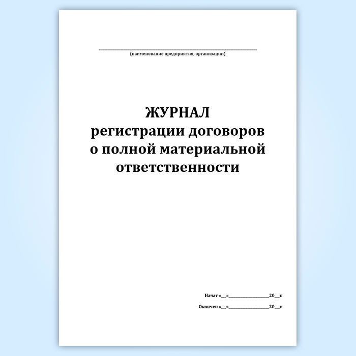 Журнал регистрации договоров о полной материальной ответственности в Кызыле купить