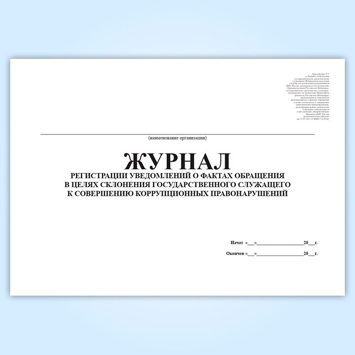 Журнал регистрации уведомлений о фактах обращения в целях склонения государственного служащего к совершению коррупционных правонарушений в Кызыле купить