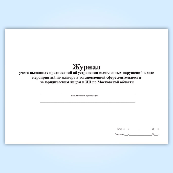Журнал учета выданных предписаний об устранении выявленных нарушений в ходе мероприятий по надзору в установленной сфере деятельности за юридическим лицом и ИП по Московской области в Кызыле купить