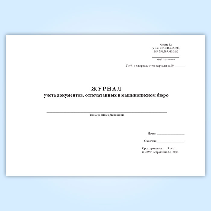 Журнал учета документов, отпечатанных в машинописном бюро (форма 32) в Кызыле купить