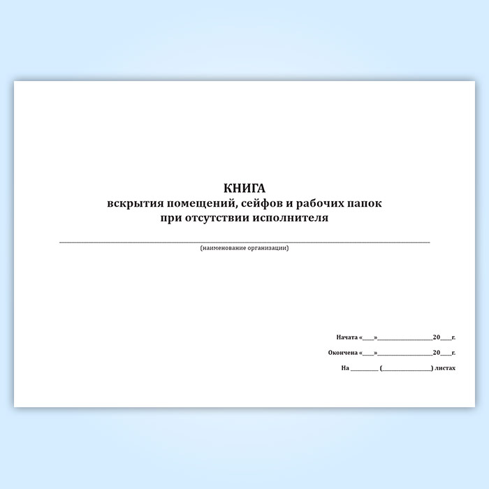 Книга вскрытия помещений, сейфов и рабочих папок при отсутствии исполнителя в Кызыле купить
