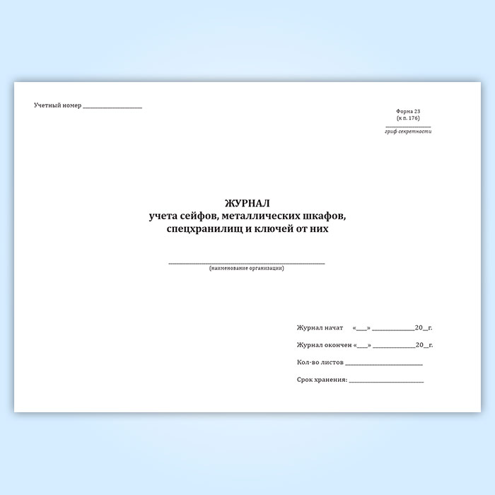 Журнал учета сейфов, металлических шкафов, спецхранилищ и ключей от них в Кызыле купить