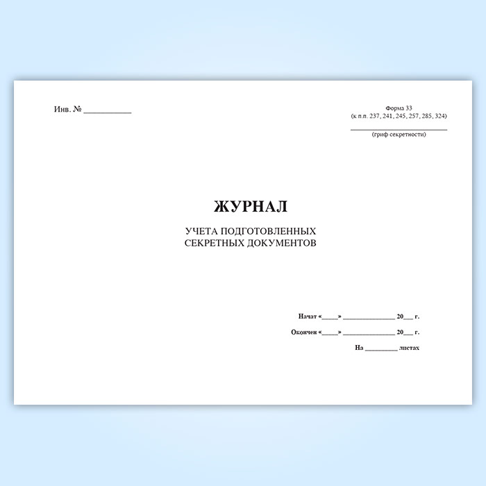Журнал учета подготовленных секретных документов (форма 33) в Кызыле купить