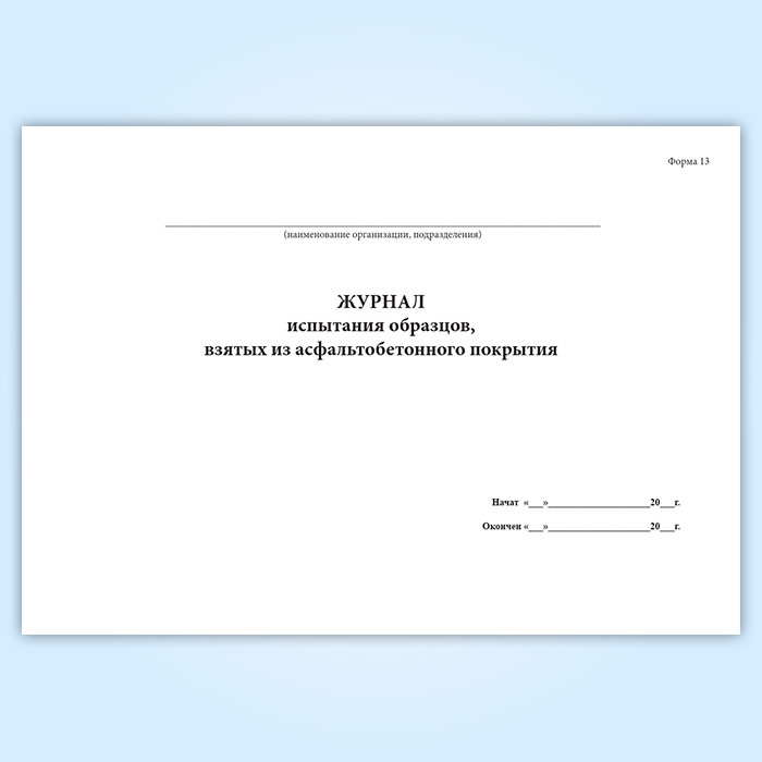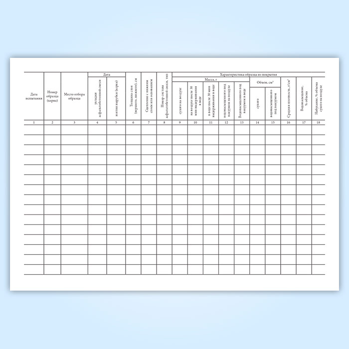Журнал испытания образцов, взятых из асфальтобетонного покрытия (форма 13) в Кызыле купить