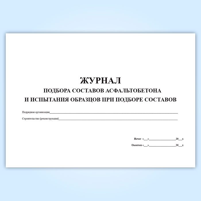 Журнал подбора составов асфальтобетона и испытания образцов при подборе составов в Кызыле купить