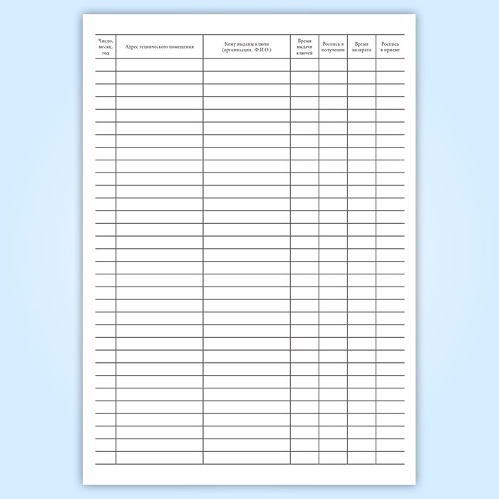 Журнал учета выдачи ключей от технических помещений, контролируемых ОДС в Кызыле купить