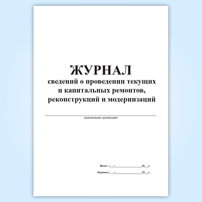 Журнал сведений о проведении текущих и капитальных ремонтов, реконструкций и модернизаций в Кызыле купить