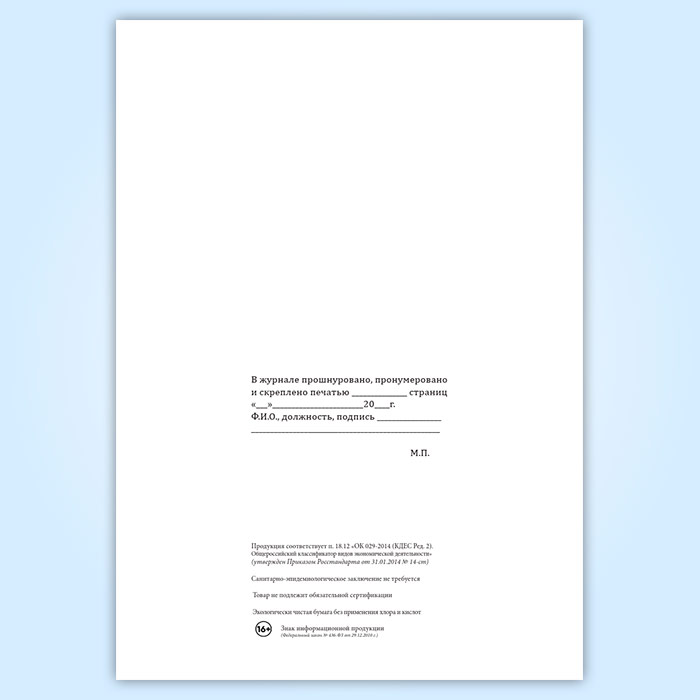 Вы получаете печатную продукцию прошнурованной и c местом для вашей печати в соответствии с действующими нормативными документами: