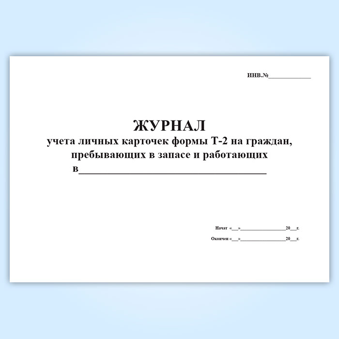 Журнал учета личных карточек формы Т-2 на граждан, пребывающих в запасе и работающих в Кызыле купить