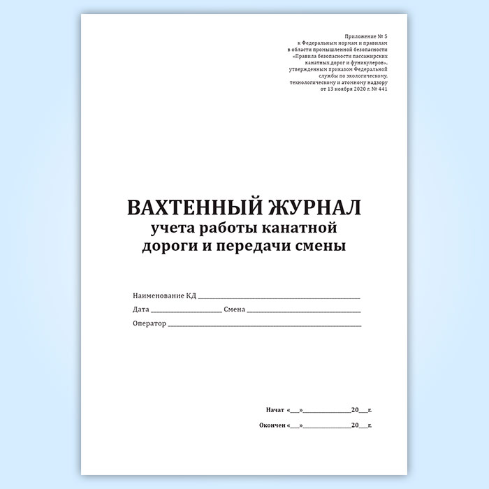 Вахтенный журнал учета работы канатной дороги и передачи смены в Кызыле купить