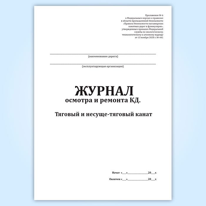 Журнал осмотра и ремонта канатной дороги. Тяговый и несуще-тяговый канат (форма № 2) в Кызыле купить