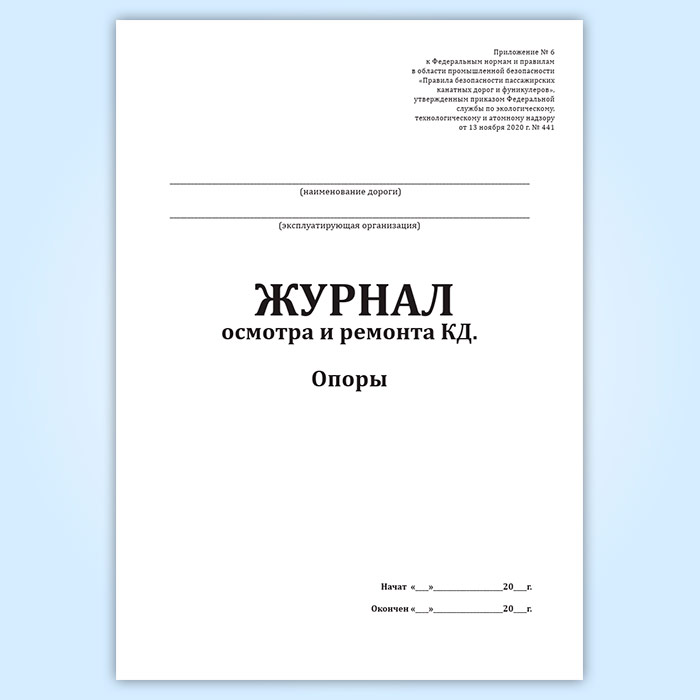 Журнал осмотра и ремонта канатной дороги. Опоры (форма № 6) в Кызыле купить