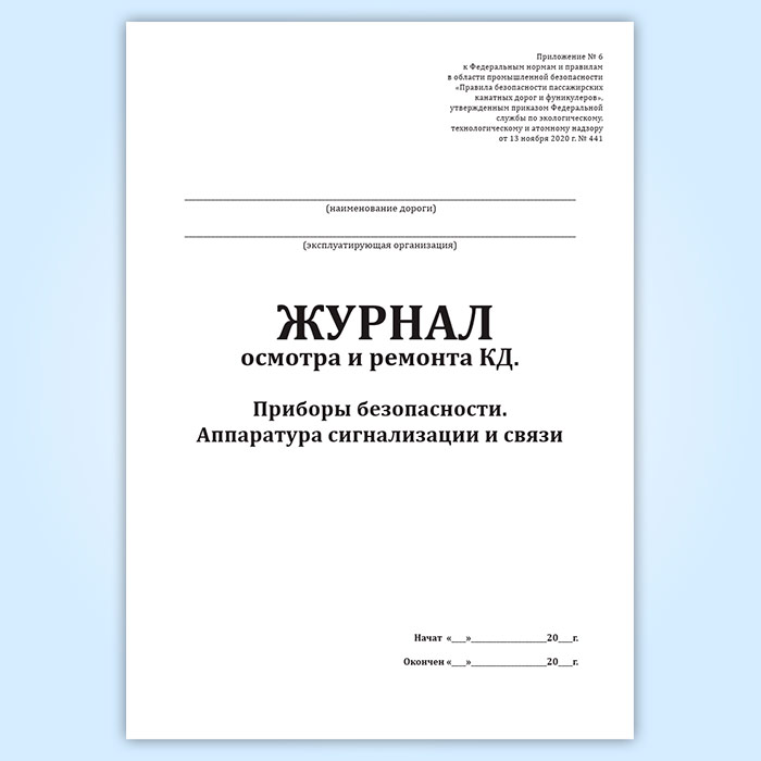 Журнал осмотра и ремонта канатной дороги. Приборы безопасности. Аппаратура сигнализации и связи (форма № 9) в Кызыле купить