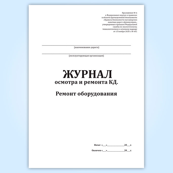 Журнал осмотра и ремонта канатной дороги. Ремонт оборудования (форма № 10) в Кызыле купить