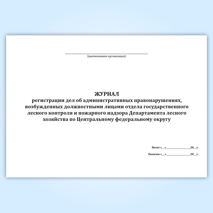 Журнал регистрации дел об административных правонарушениях, возбужденных должностными лицами отдела государственного лесного контроля и пожарного надзора Департамента лесного хозяйства по Центральному федеральному округу в Кызыле купить