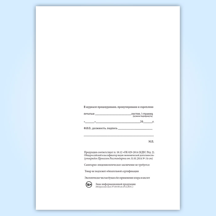 Вы получаете печатную продукцию прошнурованной и c местом для вашей печати в соответствии с действующими нормативными документами: