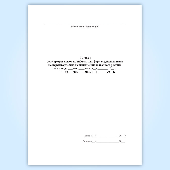 Журнал регистрации заявок по лифтам, платформам для инвалидов мастерского участка по выполнению заявочного ремонта в Кызыле купить