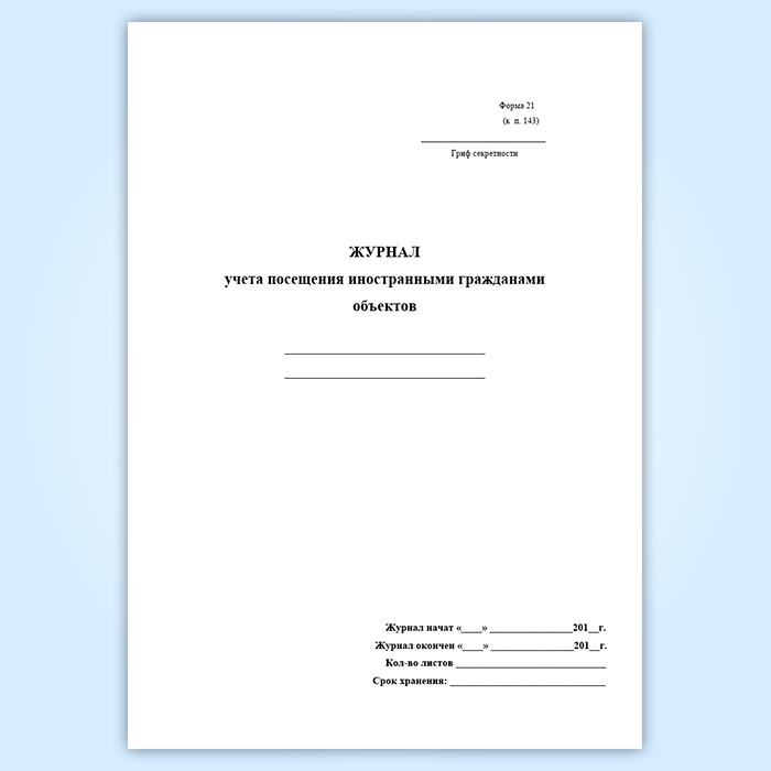 Журнал учета посещения иностранными гражданами объектов (форма 21) в Кызыле купить