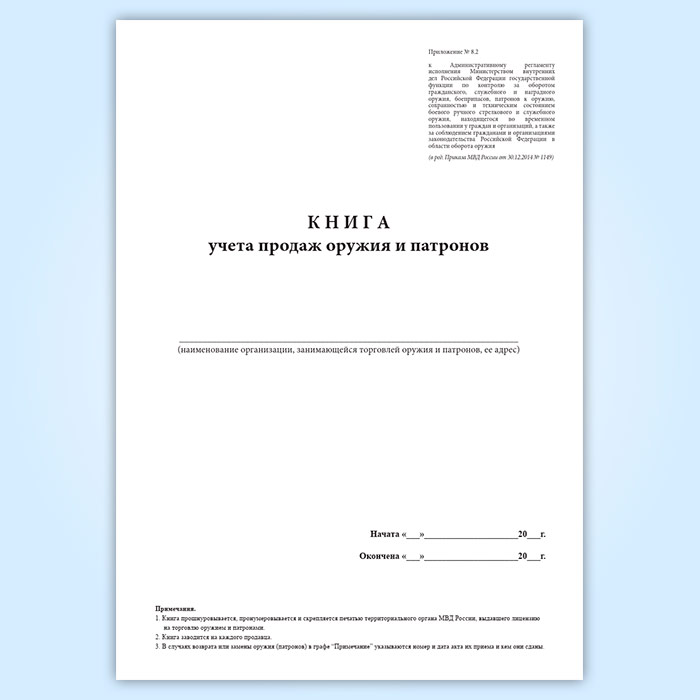 Книга учета продаж оружия и патронов (Приказ МВД России от 29.06.2012 N 646) в Кызыле купить