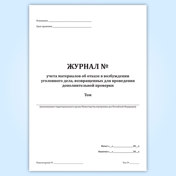Журнал учета материалов об отказе в возбуждении уголовного дела, возвращенных для проведения дополнительной проверки в Кызыле купить