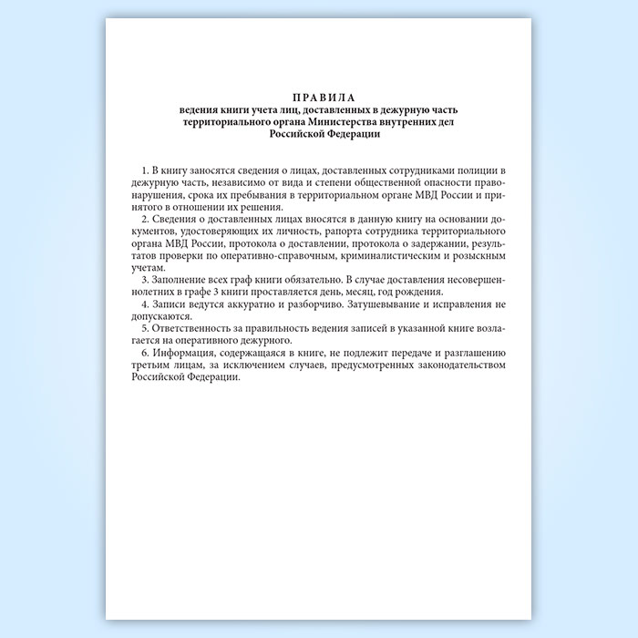 Книга учета лиц, доставленных в дежурную часть территориального органа МВД РФ в Кызыле купить