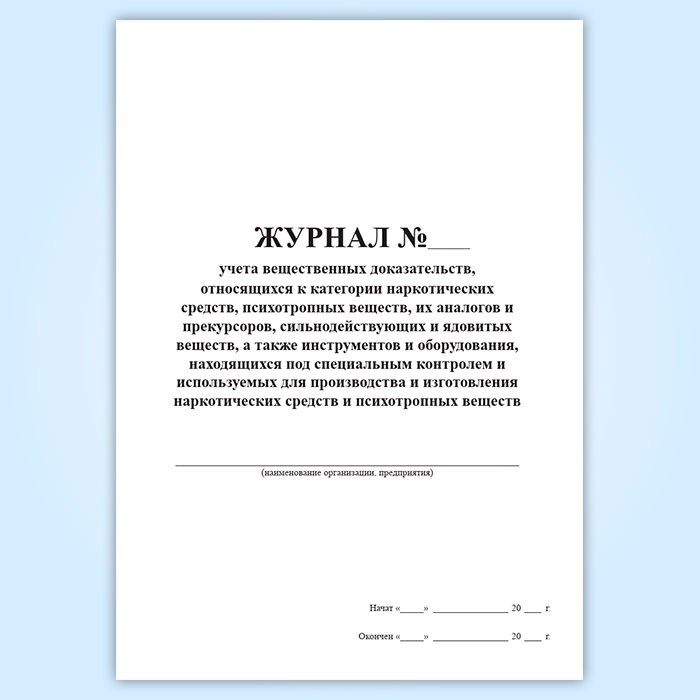 Журнал учета вещественных доказательств, относящихся к категории наркотических средств, психотропных веществ, их аналогов и прекурсоров, сильнодействующих и ядовитых веществ, а также инструментов и оборудования, находящихся под специальным контролем и используемых для производства и изготовления наркотических средств и психотропных веществ в Кызыле купить
