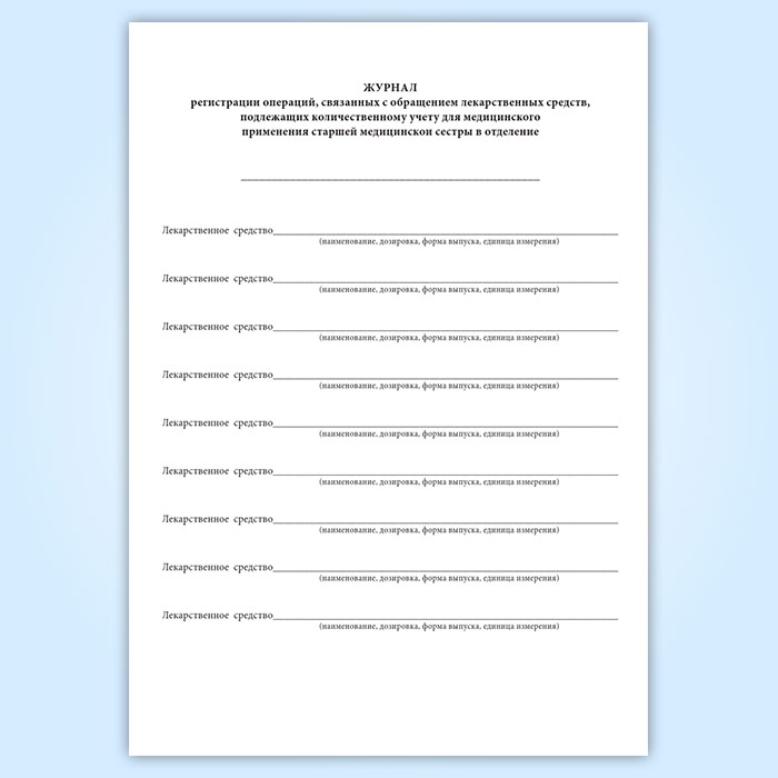 Журнал регистрации операций, связанных с обращением лекарственных средств, подлежащих количественному учету для медицинского применения старшей медицинской сестры в отделение в Кызыле купить