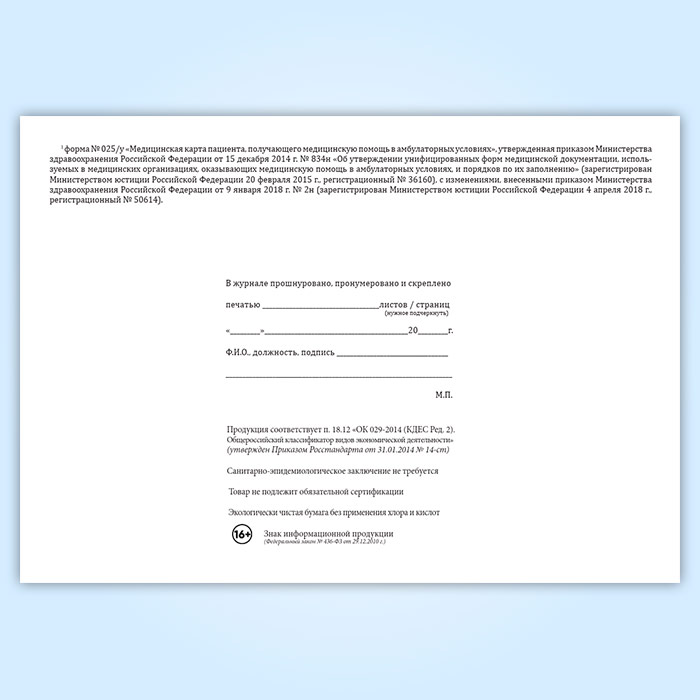 Вы получаете печатную продукцию прошнурованной и c местом для вашей печати в соответствии с действующими нормативными документами: