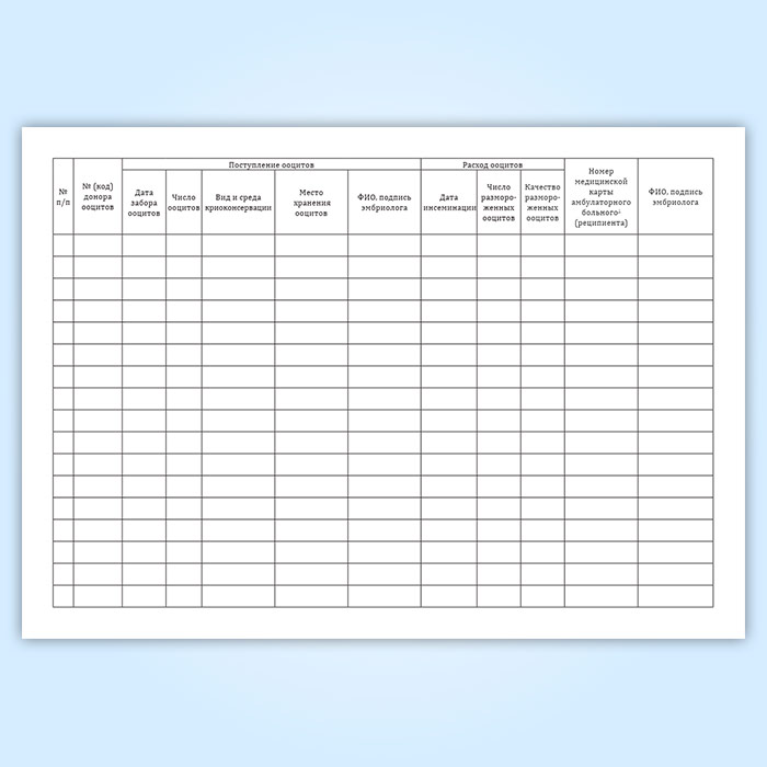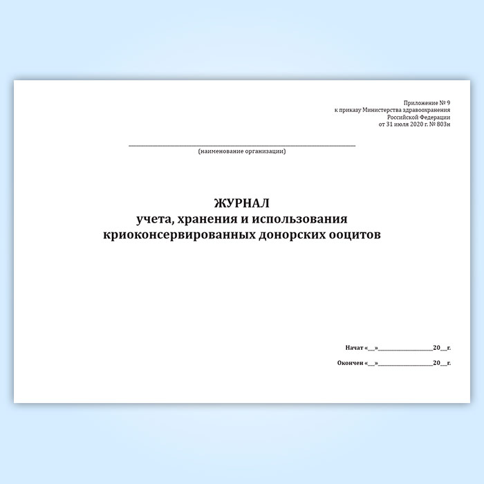 Журнал учета, хранения и использования криоконсервированных донорских ооцитов в Кызыле купить