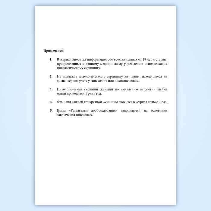 Журнал учета цитологического скрининга женщин по выявлению патологии шейки матки в Кызыле купить