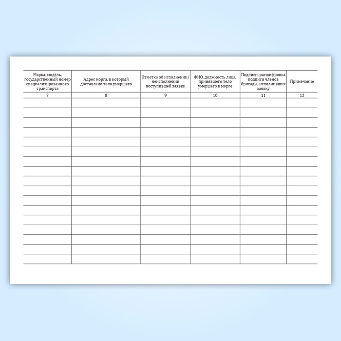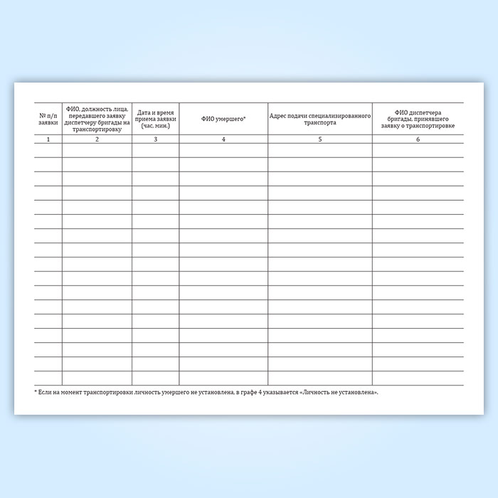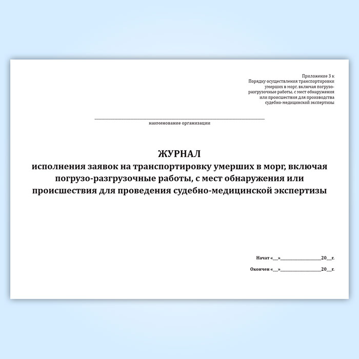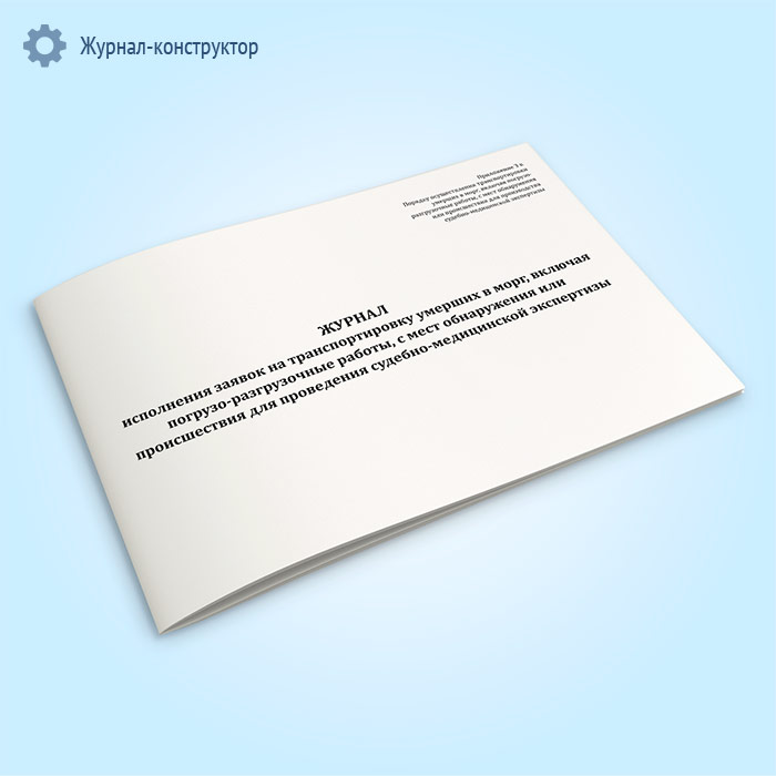 Журнал исполнения заявок на транспортировку умерших в морг, включая погрузо-разгрузочные работы, с мест обнаружения или происшествия для проведения судебно-медицинской экспертизы в Кызыле купить
