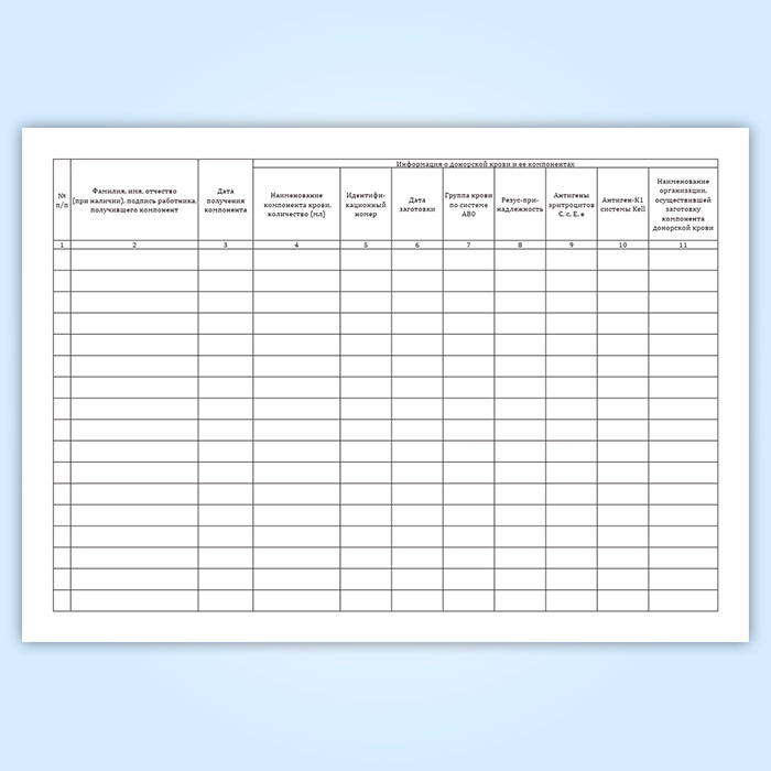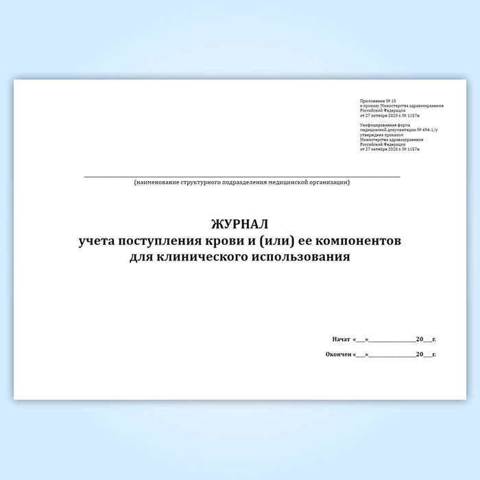Журнал учета поступления крови и (или) ее компонентов для клинического использования (форма № 494-1/у) в Кызыле купить