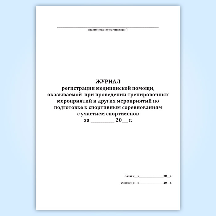 Журнал регистрации медицинской помощи, оказываемой при проведении тренировочных мероприятий и других мероприятий по подготовке к спортивным соревнованиям с участием спортсменов в Кызыле купить