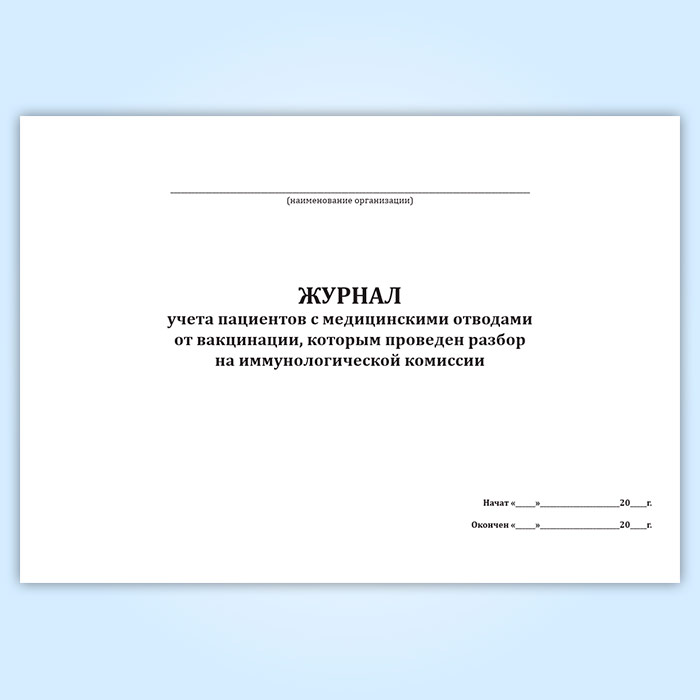 Журнал учета пациентов с медицинскими отводами от вакцинации, которым проведен разбор на иммунологической комиссии в Кызыле купить