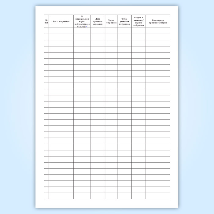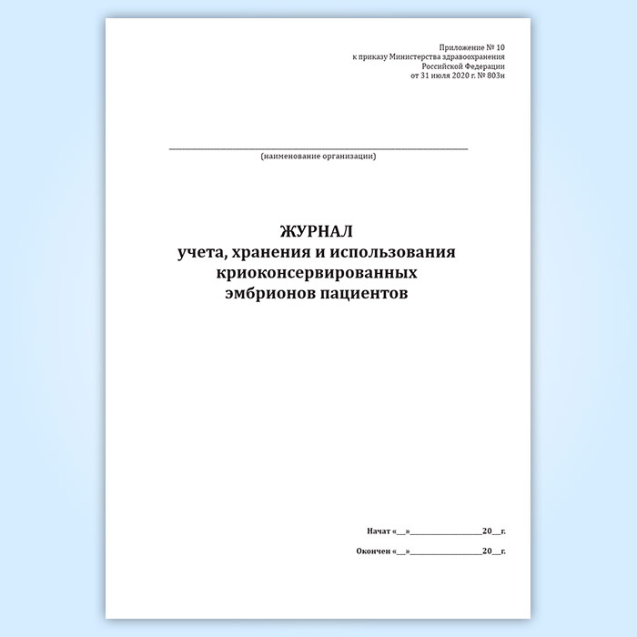 Журнал учета, хранения и использования криоконсервированных эмбрионов пациентов в Кызыле купить