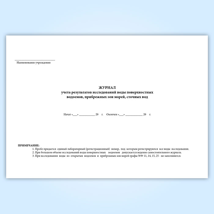 Журнал учета результатов исследований воды поверхностных водоемов, прибрежных зон морей, сточных вод (форма № 324-у) в Кызыле купить