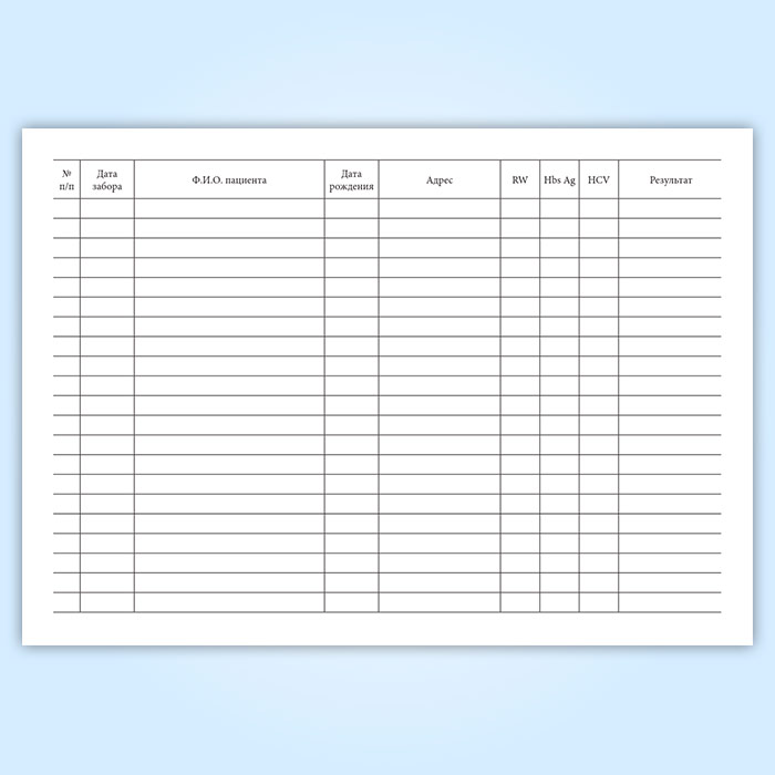 Журнал учета исследований образцов сыворотки на RW, Hbs, Ag, HCV в Кызыле купить
