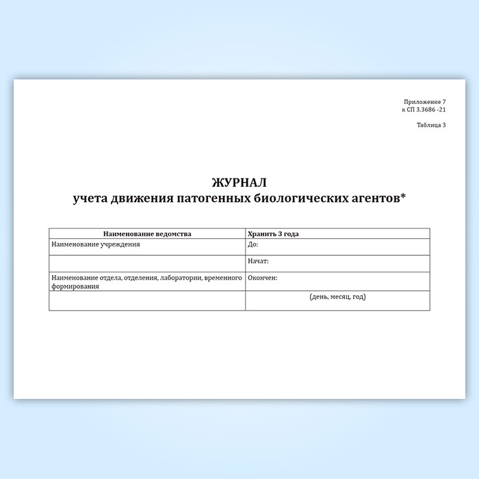 Журнал учета движения патогенных биологических агентов (СанПиН 3.3686-21) в Кызыле купить