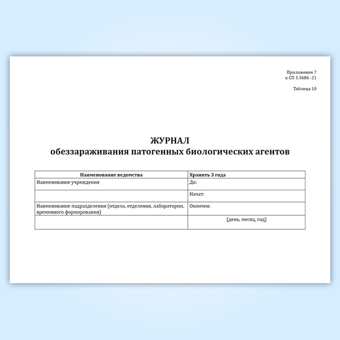 Журнал обеззараживания патогенных биологических агентов (СанПиН 3.3686-21) в Кызыле купить