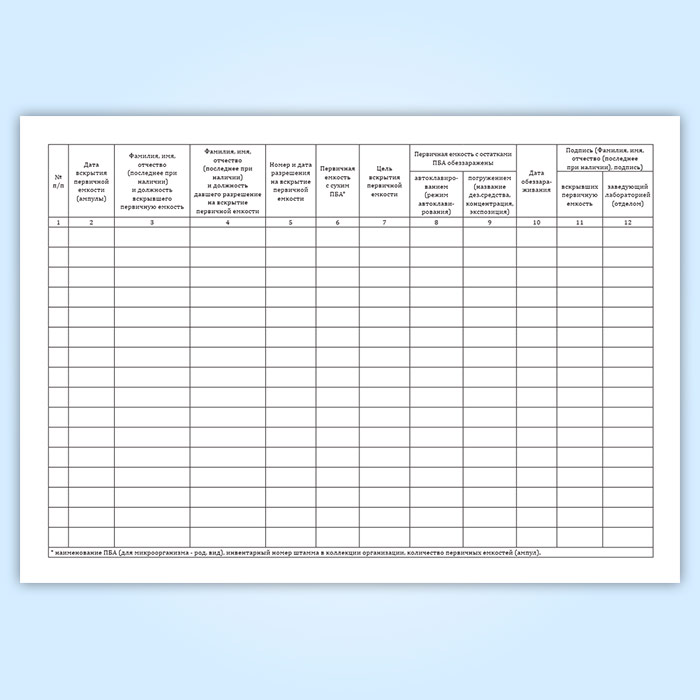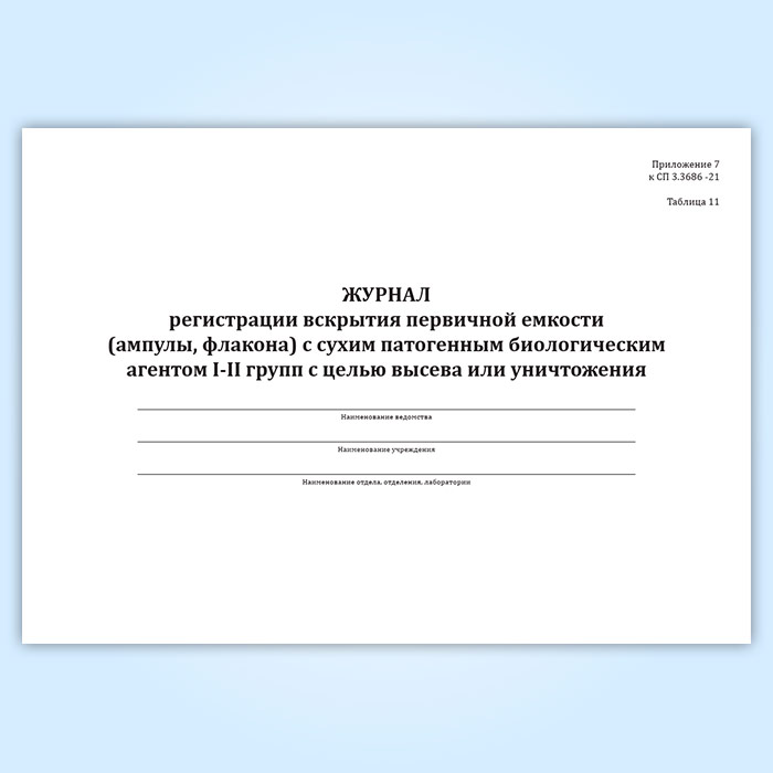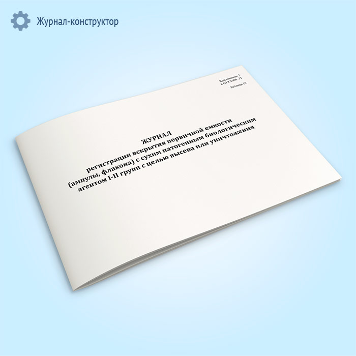 Журнал регистрации вскрытия первичной емкости (ампулы, флакона) с сухим патогенным биологическим агентов I-II групп с целью высева или уничтожения в Кызыле купить