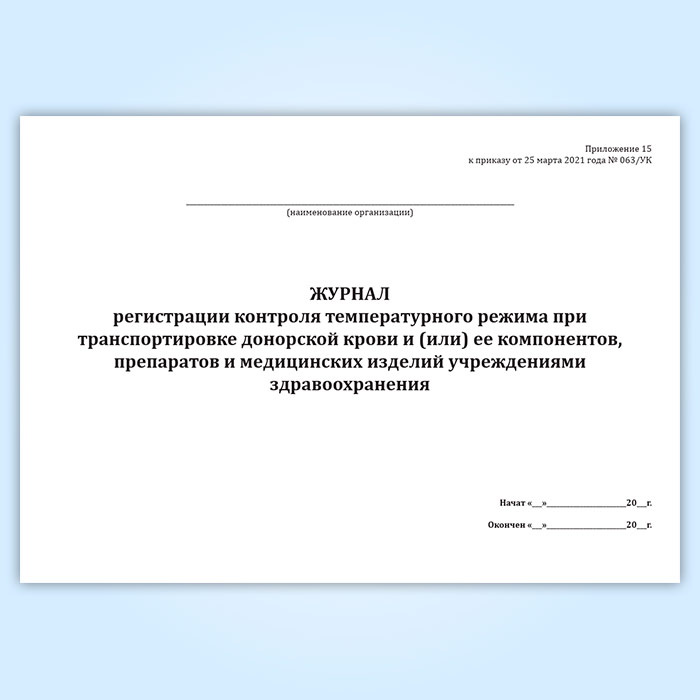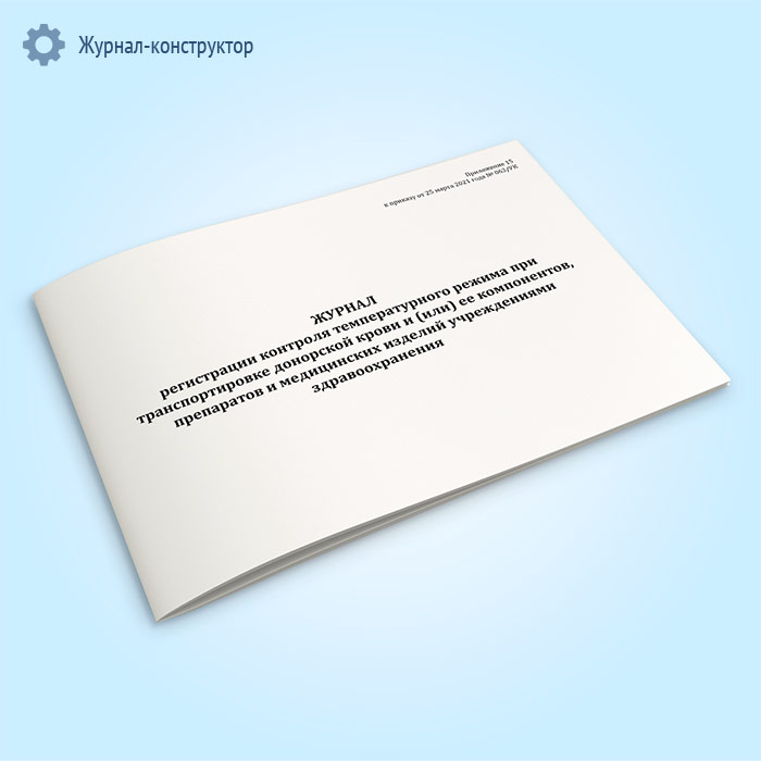 Журнал регистрации контроля температурного режима при транспортировке донорской крови и (или) ее компонентов, препаратов и медицинских изделий учреждениями здравоохранения в Кызыле купить
