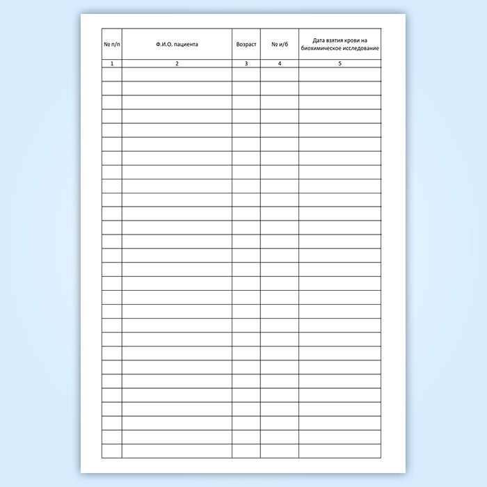 Журнал учета взятия крови на биохимические исследования, СПИД, RW в Кызыле купить