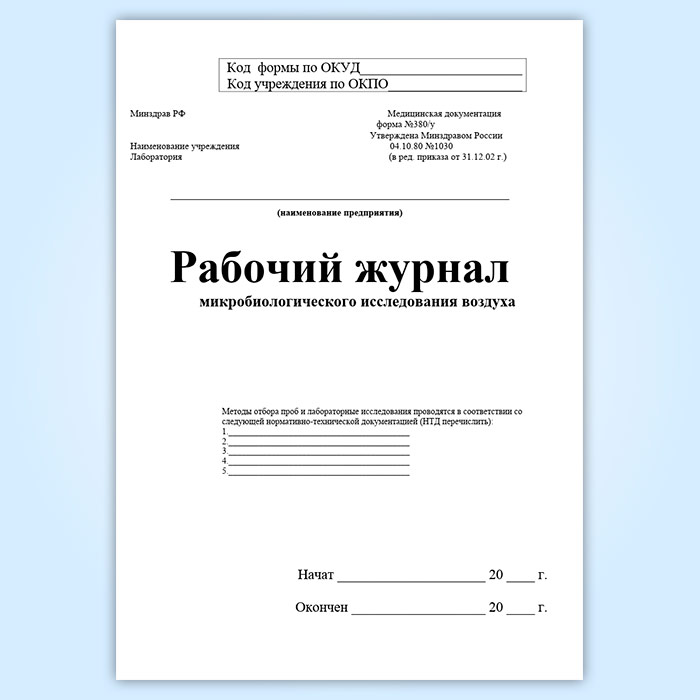 Рабочий журнал микробиологического исследования воздуха (форма 380/у) в Кызыле купить