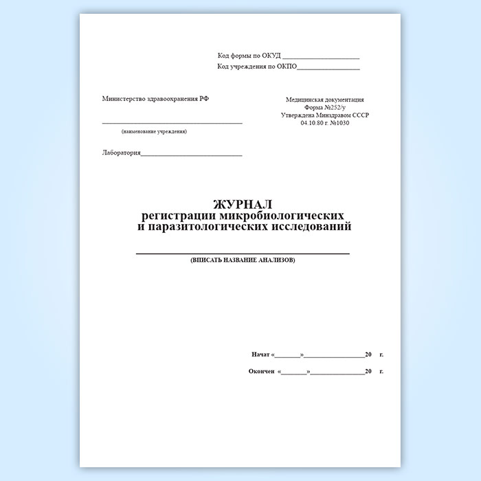 Журнал регистрации микробиологических и паразитологических исследований (форма 252/у) в Кызыле купить
