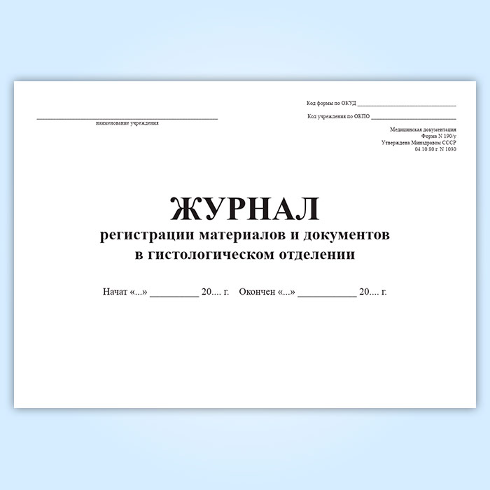 Журнал регистрации материалов и документов в гистологическом отделении (форма 190/у) в Кызыле купить