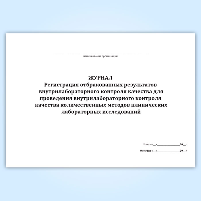 Журнал «Регистрация отбракованных результатов внутрилабораторного контроля качества для проведения внутрилабораторного контроля качества количественных методов клинических лабораторных исследований» в Кызыле купить