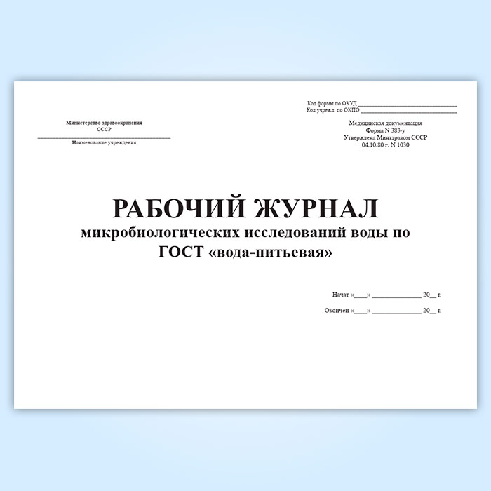 Рабочий журнал микробиологических исследований воды по ГОСТ вода-питьевая (форма 383/у) в Кызыле купить