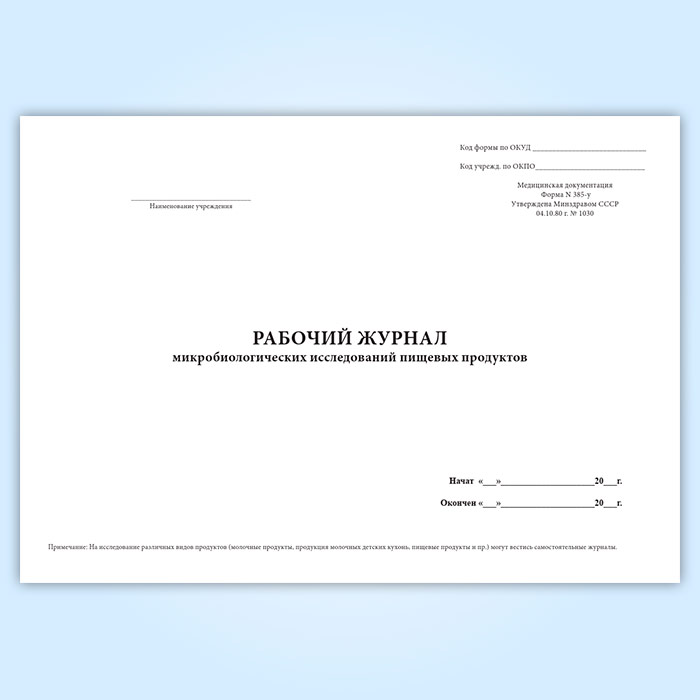 Рабочий журнал микробиологических исследований пищевых продуктов (форма 385/у) в Кызыле купить